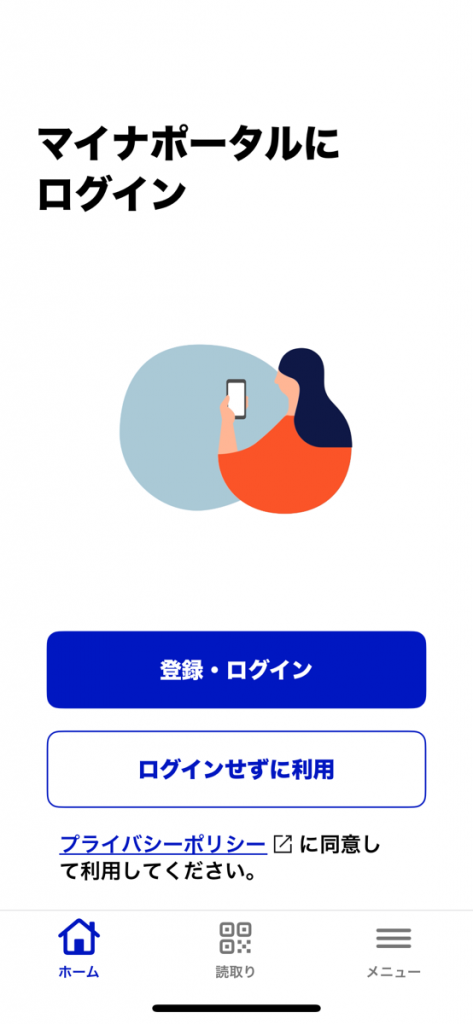 1.ご自身のスマートフォンで、マイナポータルにログイン