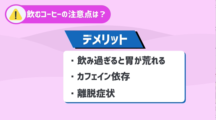 カフェインも体にあまり良くない作用を及ぼす場合があるんです。