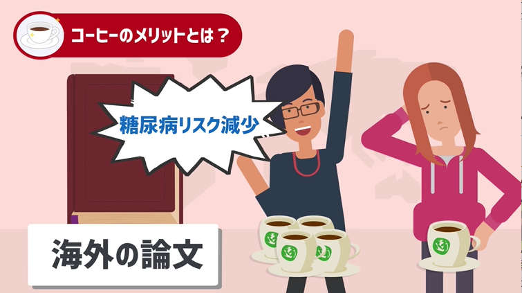 海外の論文では、1日3-4杯コーヒーを飲んでいた人は、飲む量が2杯以下だった人に比べて糖尿病のリスクが下がったという結果も存在しています。