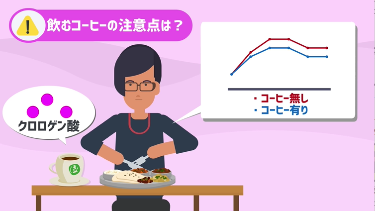 一説ではコーヒーに含まれるポリフェノールの1種であるクロロゲン酸などが食後の血糖値の上昇を抑え、良い効果を及ぼしているのかもしれないと言われています。
