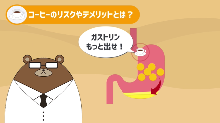 そして、コーヒーは実は胃を通過するときに、胃を叩いて「ガストリンをもっと出せ!」と命令するんですね。
