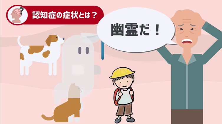 この幻視ではワンちゃんやネコちゃんなどの小動物、虫、子供などのまぼろしが見えてしまう症状が出る事があり、幽霊を見たと勘違いしてしまう場合もあるんですね。