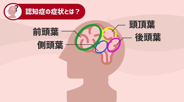 アルツハイマー型の認知症ではこの側頭葉と頭頂葉が萎縮してしまうので、今紹介したような症状が出る場合が多いです。