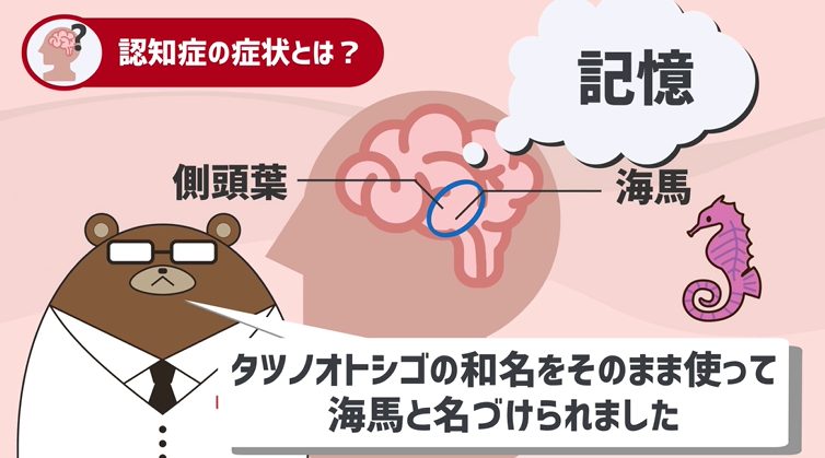 この側頭葉の内側に存在する海馬という場所が人間の記憶を仕分け、ファイルにまとめ、分類する仕事している非常に重要な場所なんです。