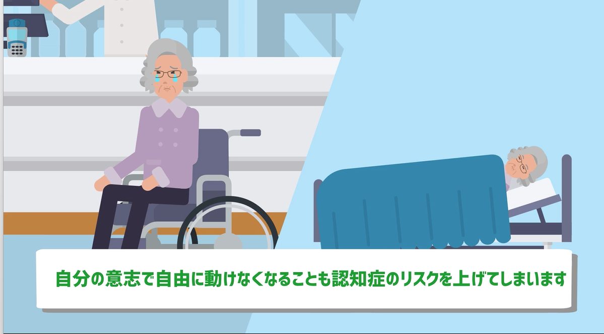 この骨を折って、手術をした後、車いすや、あるいは寝たきりになって、自分の意志で自由自在に動けなくなってしまうことも認知症のリスクを上げてしまいます。