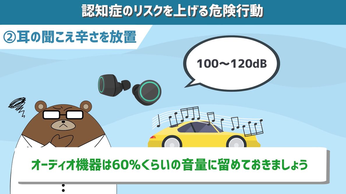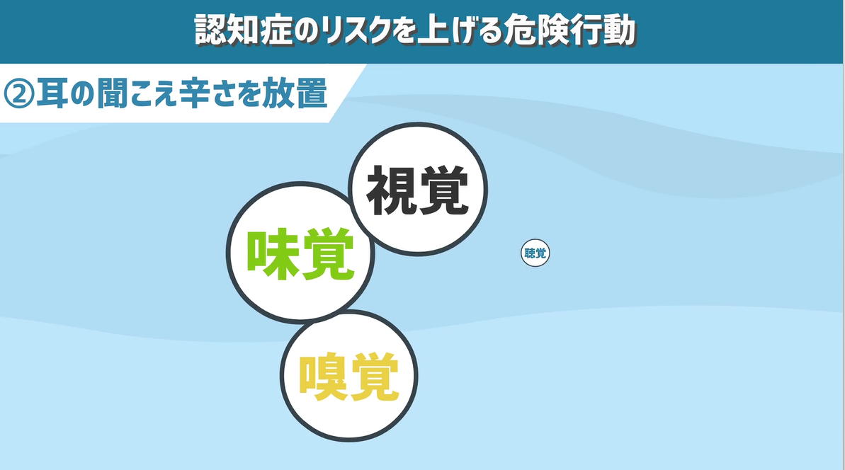 認知症のリスクを上げる危険行動が、耳の聞こえ辛さを放置してしまうことです。