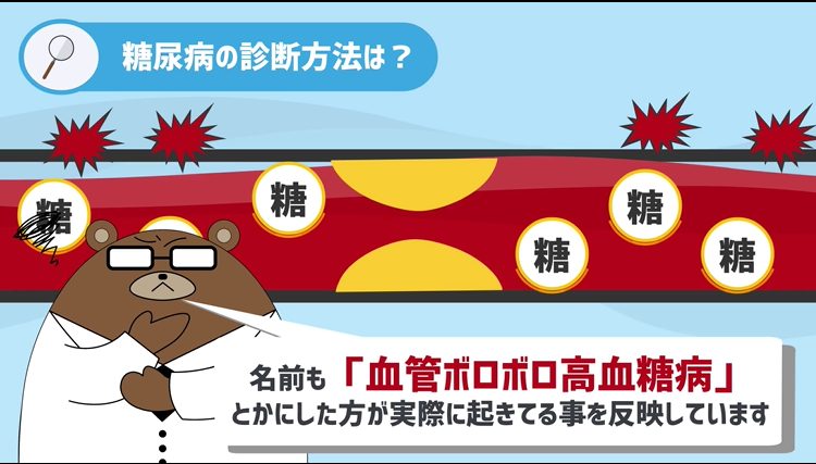 糖尿病は血管を傷つける病気という意味がおわかりいただけたでしょうか。