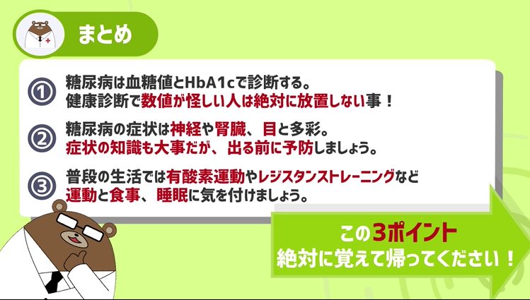 健康診断の結果も参考にしつつ、こういった日常生活での良い習慣を、少なくとも糖尿病予備軍の段階から一定の危機感を持って行っていけると良いですね。