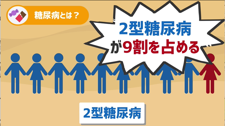 この2型の方の糖尿病が糖尿病患者さんの9割以上を占めると言われています。
