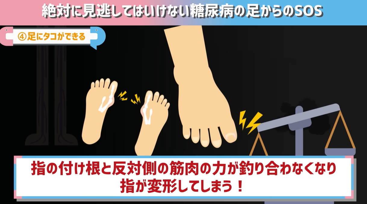 足にタコができるのはよくあることだと思うんですが、実は糖尿病が関係していることも。