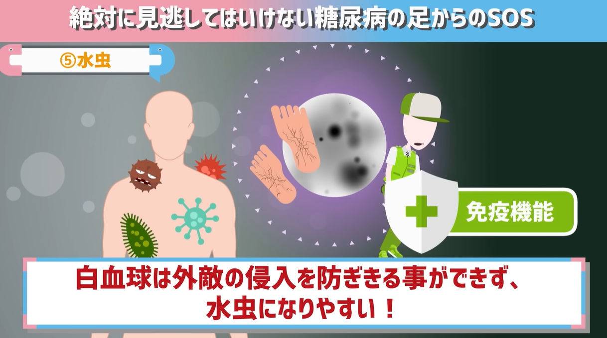 そして糖尿病の人が水虫になりやすいもう一つの理由が「免疫機能の低下」。