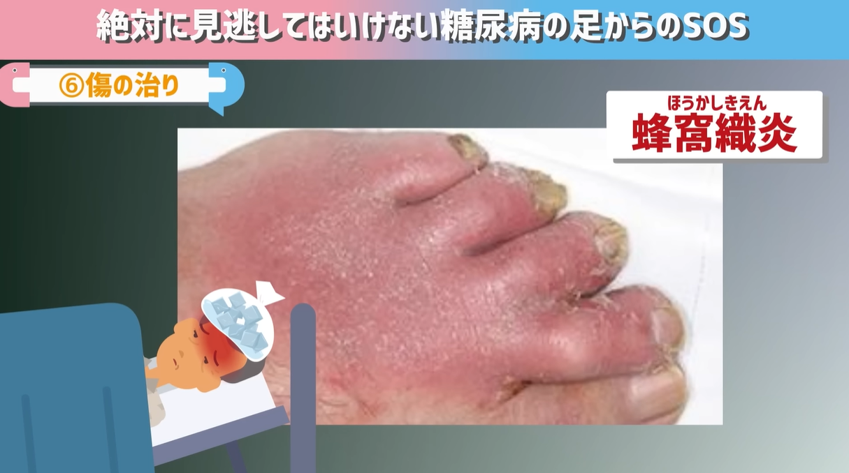 他にもばい菌が入ったら足がパンパンに赤く腫れてしまい、高熱が出る「蜂窩織炎(ほうかしきえん)」という病気になりやすくなりますし、風邪をひきやすくなるでしょう。