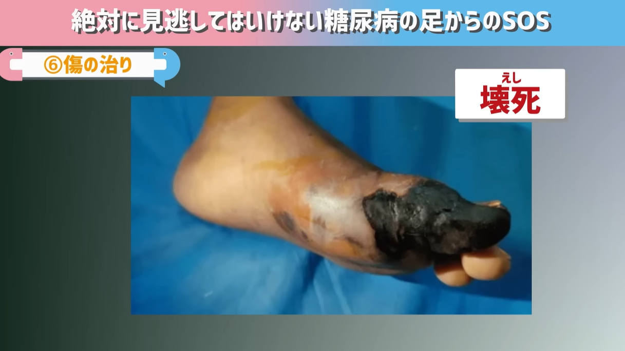 また、糖尿病では足が変形して靴ずれも起きやすくなりますから、「ちょっとした靴ずれからばい菌が入り、傷が広がり足の切断を余儀なくされる。」このような一連の流れの全てに糖尿病は追い打ちをかけているという状況になってしまうんです。
