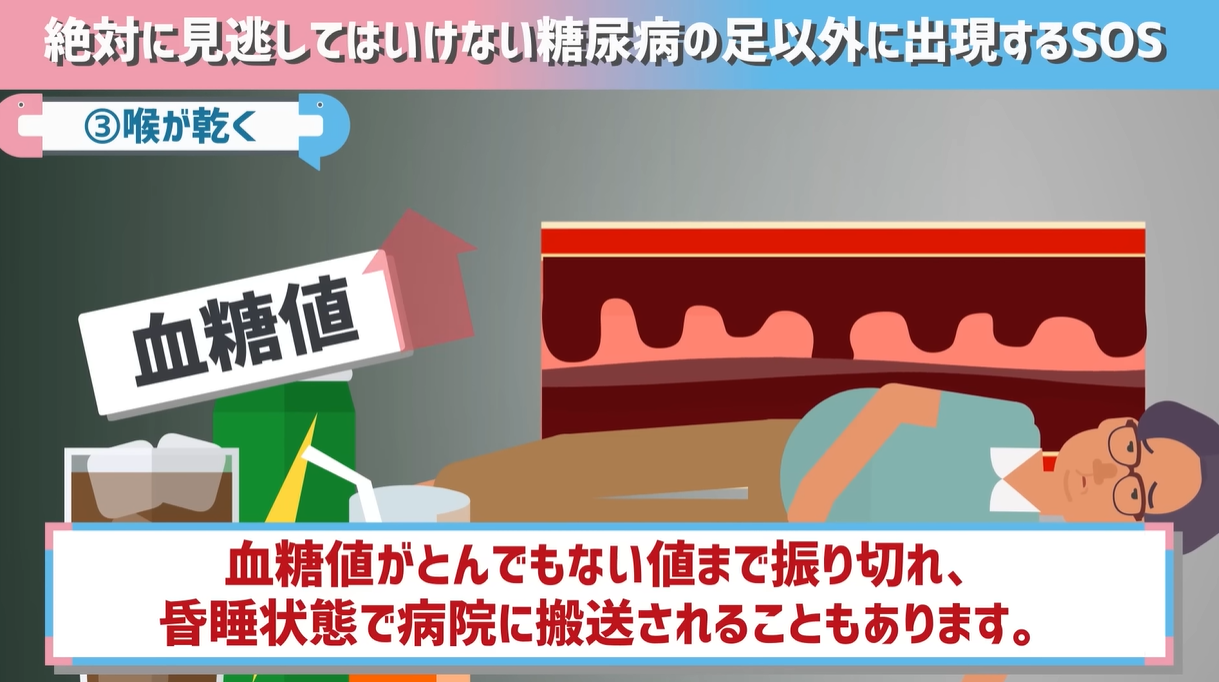 そして本人が気づかずにこのループを繰り返し続けると、血糖値がとんでもない値まで振り切れ、昏睡状態で病院に搬送されることもあります。