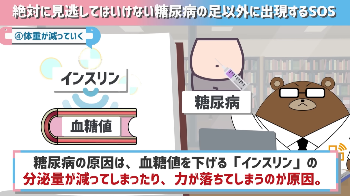 しかし、いざいったん糖尿病になって、しばらくたつと今度は「体重が減ってくる」こういう事があるんですね。