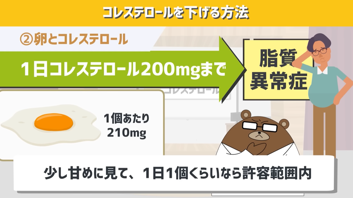 現在学会の基準だと、LDLが高い人は、1日コレステロール200mgまでの摂取にして、生活の対策をする方針になっています。