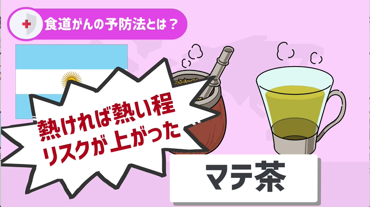 また南米でも、通称「飲むサラダ」と呼ばれるマテ茶と食道がんの関係を調査した研究で、マテ茶が熱ければ熱いほど食道がんのリスクが上がった、というデータもあります。