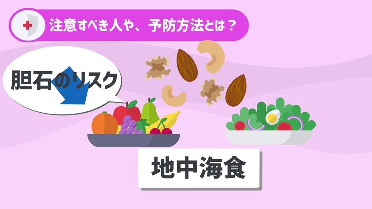 しかも地中海食に含まれる果物、野菜、ナッツが胆石のリスクを下げるというデータもありますから、胆石予防にも地中海食はかなり良い方法と言えるでしょう。