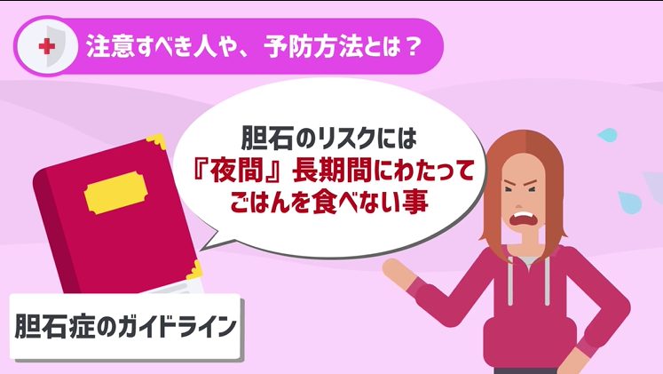 しかし、実は、胆石症のガイドラインでは、胆石のリスクには夜14時間以上など、長期間にわたってごはんを食べない事が挙げられています。