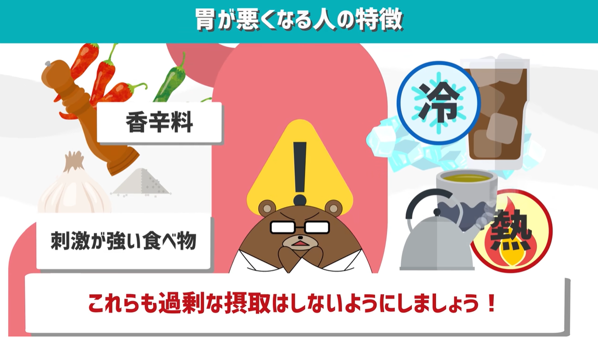 人間の食への欲求は強く、それ以外にも様々な刺激のあるものを摂取し、その中のとある食べ物や飲み物の中で胃にとって苦手としているものが落ちてくると、胃は苦しめられるんですね。