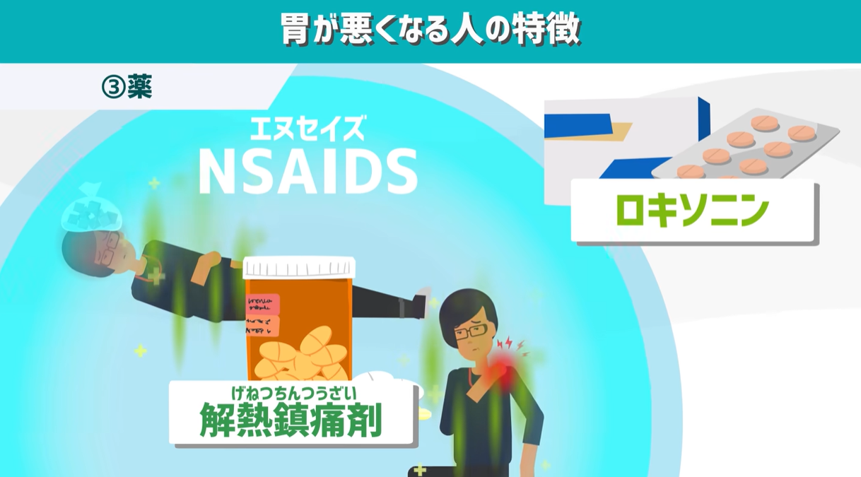 仕事でストレスをためこみ続けて、残業の眠気覚ましにコーヒー、週末は宴会三昧。二日酔いの頭痛にロキソニンを飲み続ける…こんな生活は胃にとって最強最悪のセットです。