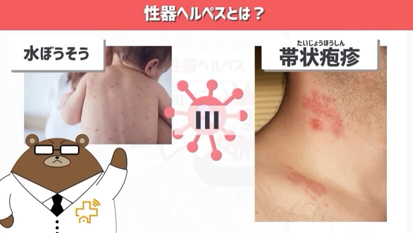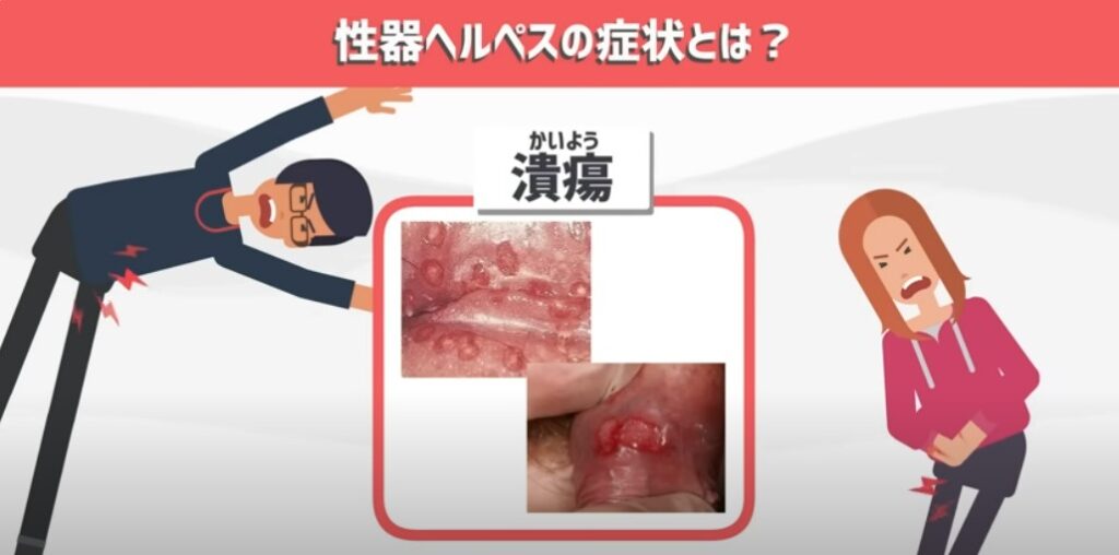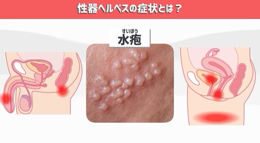 そしてこのように見た目でわかりやすい性器ヘルペスは、おしっこの通り道にできると、激痛でおしっこができなかったり、ひどい場合は歩けなくなってしまう場合もある、結構怖い病気なんです。
