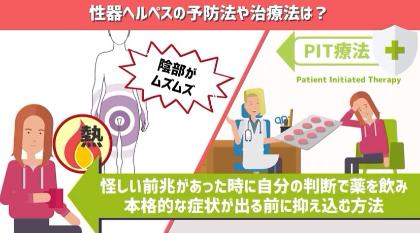 そして、本当に繰り返し症状が出現し、性器ヘルペスとの共存に苦しんでいる人が多いので、新しい治療法が生み出されました。それがPIT(Patient Initiated Therapy)療法というものです。