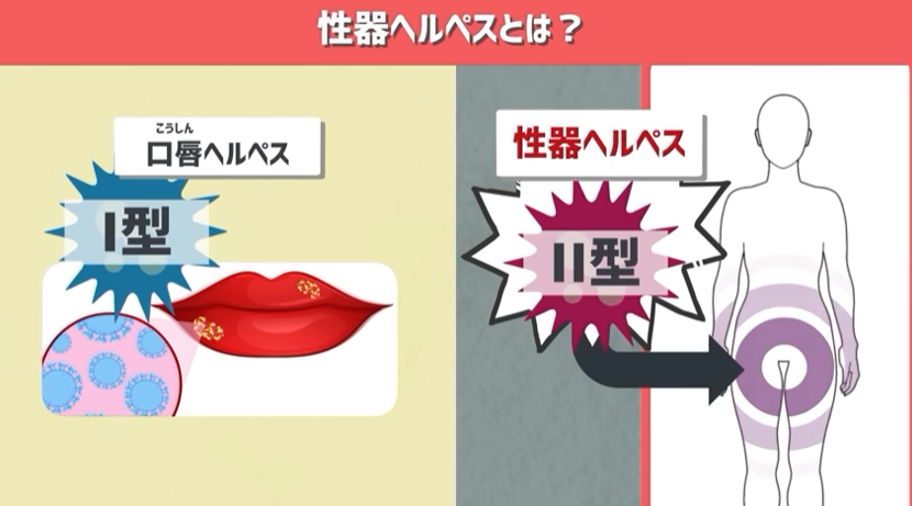 昔はⅠ型が、「口唇ヘルペス」という口の周りにできるヘルペスの原因で、Ⅱ型の方が性器ヘルペスの原因と分類が分かれていたんですが、最近ではオーラルセックスなどの性行為の多様化の影響もあり、Ⅰ型が性器に感染することも珍しくなくなってきました。
