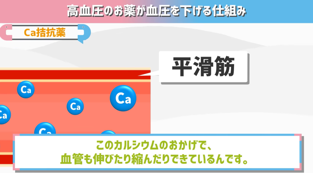 まず、血圧のお薬にもいくつかの種類があるんですが、今回取り上げるのは「Ca拮抗薬(カルシウムきっこうやく)」という種類のお薬。