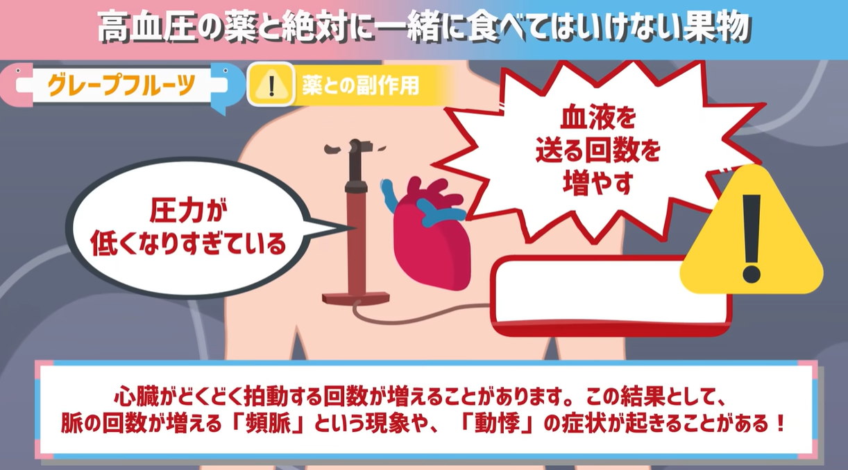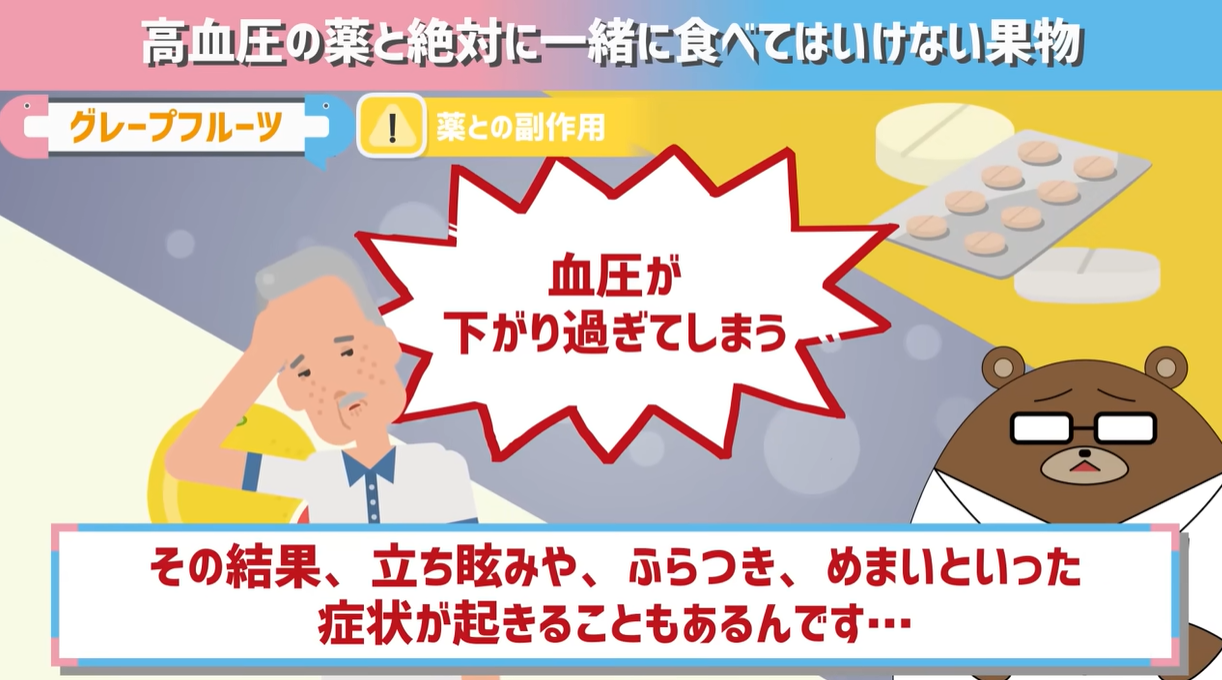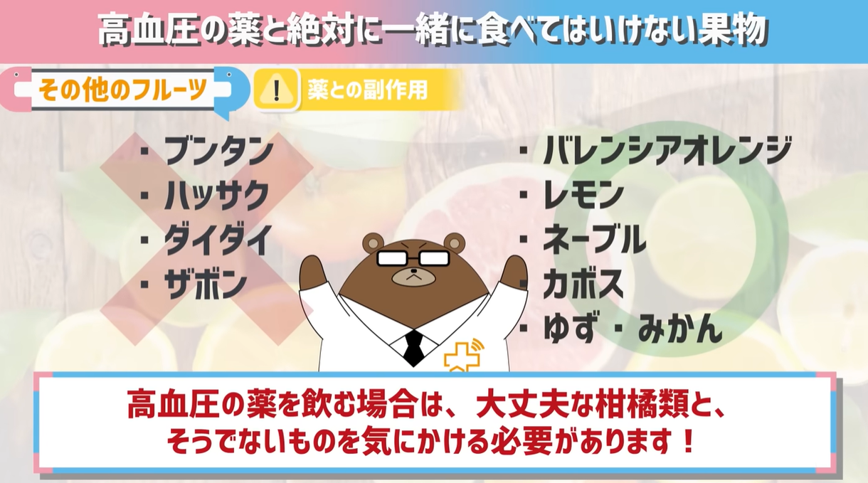 高血圧は日本に約4300万人、およそ3人に1人が該当するとされていて、なので当然高血圧のお薬を自分も飲んでいる、こういう人も多いでしょう。何も知らずに大好きな果物をパクパク食べていると、ある日思わぬ副作用に苦しめられるかもしれません。