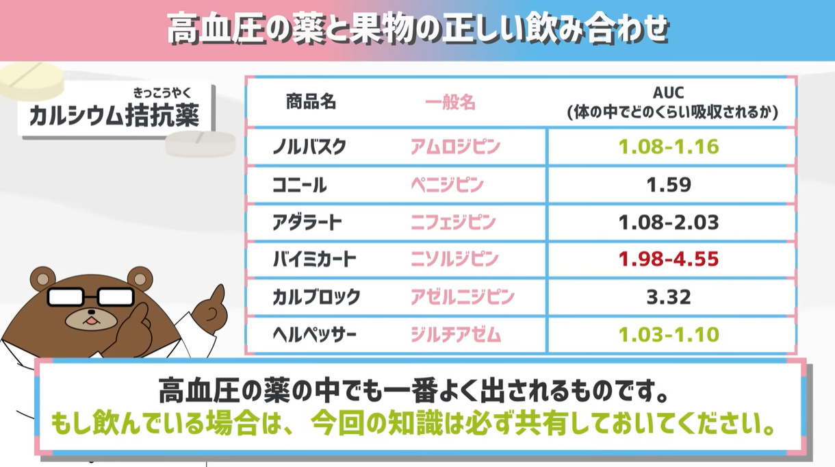 また、高血圧のお薬全てに当てはまる訳ではなく、今回紹介した相互作用は、カルシウム拮抗薬を飲んでいる人が気を付けるべきもの。