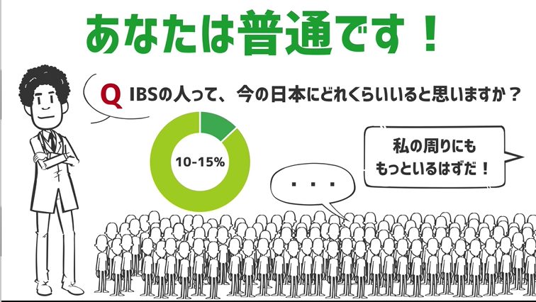 IBSの人は、今の日本人の全体の10-15%。10人に1人がIBSと言われています。