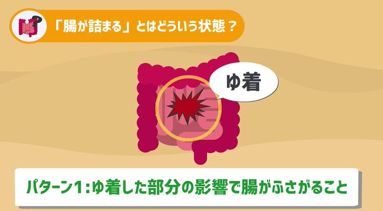 盲腸などの腸の病気で手術をした後の人は、その手術を行った事による影響で腸がぺったりとくっつく、「ゆ着」という状態になってしまい、ゆ着した部分の影響で腸がふさがってしまう、この状態が腸が詰まる原因となるというパターンがまず一つあります。