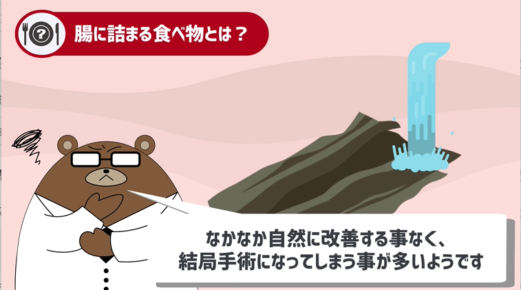 しかし放っておいても数か月食べ物が流れていかない事もありますし、場合によっては炎症を引き起こして腸に穴が開いてしまう事もあるので、結果として早めに手術をして、残念ながら詰まった部分を切除しなければならない事も多いんです。