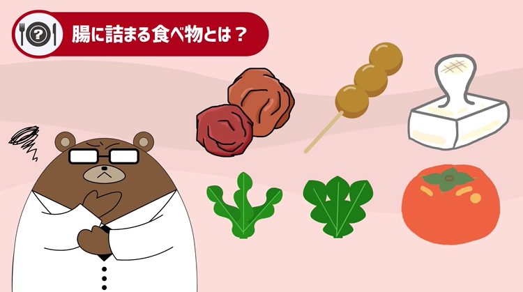 このように、腸につまる食べ物はのみこみやすかったり、水で膨らみやすかったり、特殊な性質があったり、様々な特徴があるんですね。
