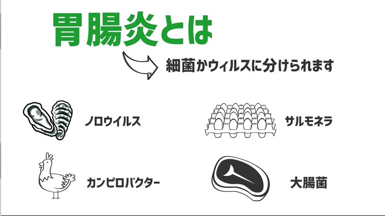 先程、胃腸炎の原因は細菌や、ウイルスであると説明しました。