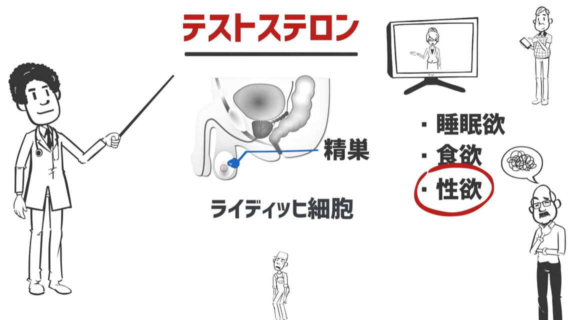 ただ、人間は年を重ねるごとに、精巣でテストステロンを作っている工場員であるライディッヒ細胞という細胞の数が徐々に減っていってしまい、「工場の生産数が落ちていってしまう=だんだん性欲も衰えてきてしまう」という仕組みなんですね。