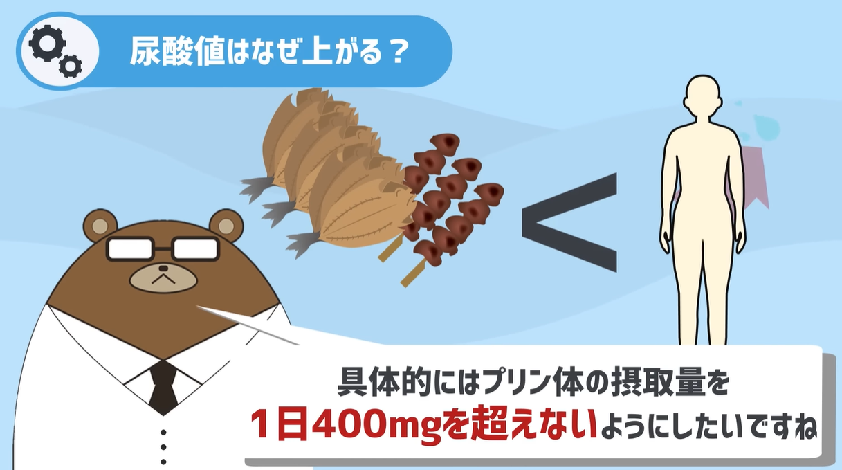 具体的には、プリン体の摂取量は1日400ミリグラムを超えないようにしたいですね。