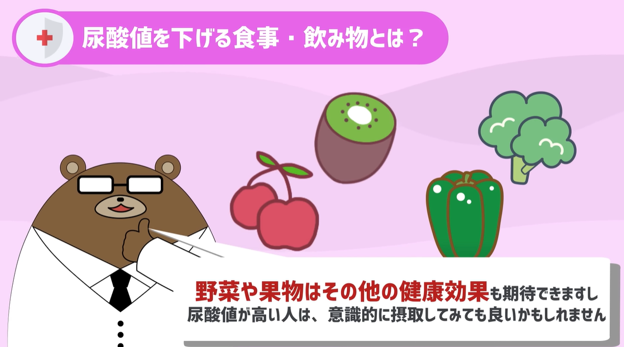 野菜や果物はその他の健康効果も期待できますし、 尿酸値が高い人はこれらの食べ物を意識的に摂取してみてもいいかなと思います。