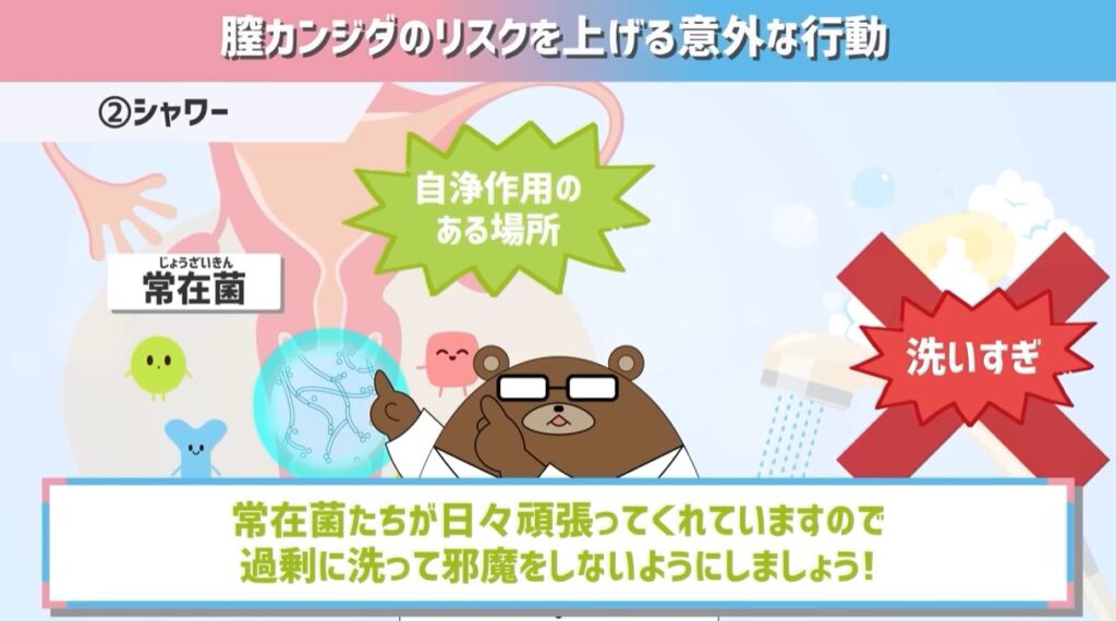 これ実は、非常に清潔で良い対策のように思えるかもしれません。しかし、実は大間違い。膣カンジダになるリスクを上げてしまう行動なんです。