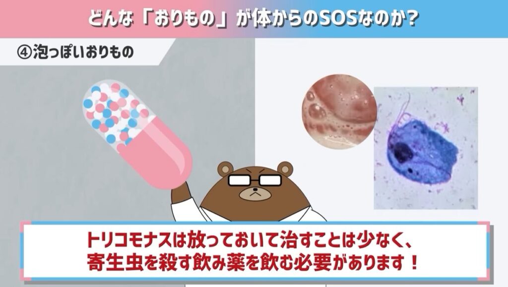 痛みやかゆみが出ることもあるんですが、特にそういった症状はなく、このような泡立ったおりもののサインしか出せないこともあります。