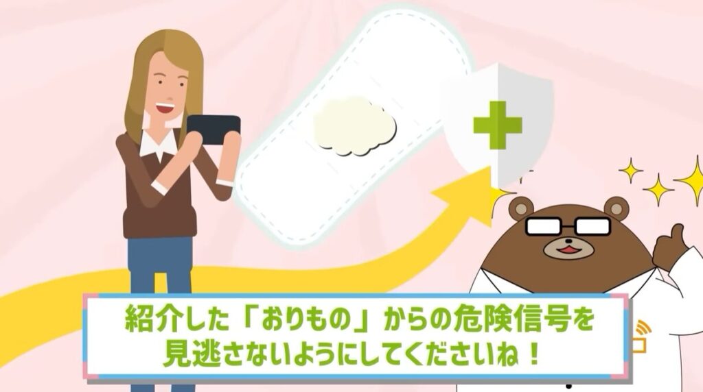 この動画は紹介した知識はしっかりと覚えておいて、おりものは日常的に女性が接する存在なので、時に気にかけて、おりものからの危険信号を見逃さないようにしてくださいね。